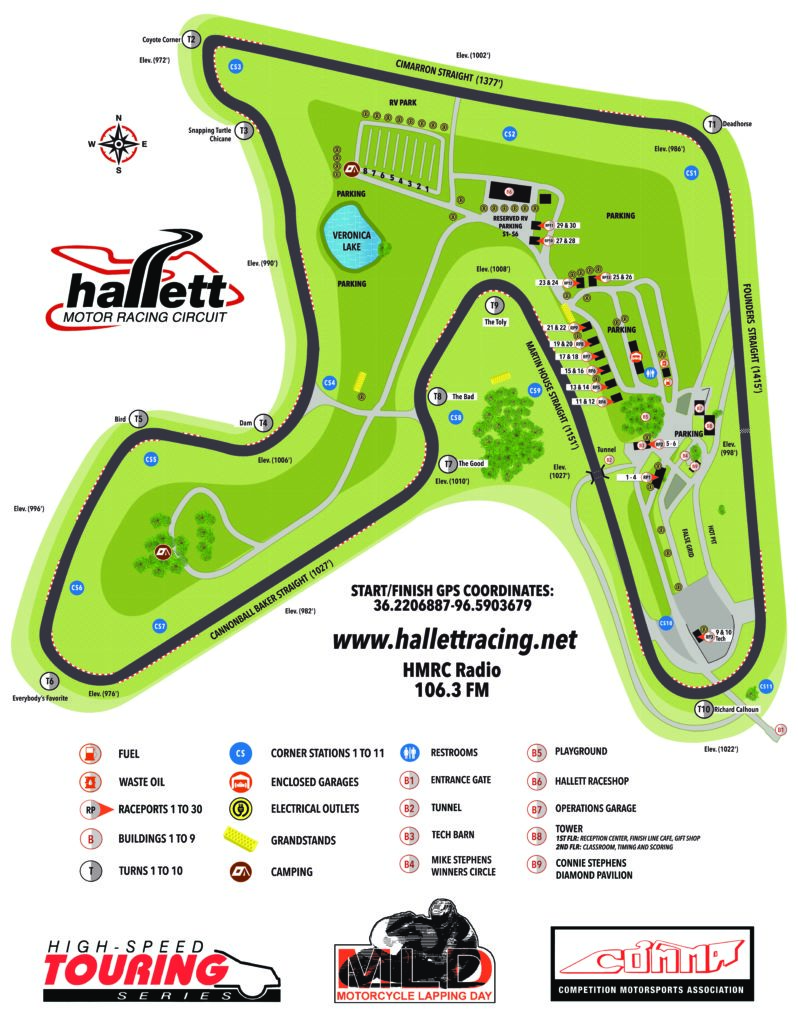 Hallett MRC is the Oklahoma Mustang Club’s home track and often times, is the first road course ever for many of our OMC members. Hallett MRC hosts a local racing series, seasonal HPDE (locally titled as High Speed Touring, or HST) events, Motorcylce Lap Days, VIP Track days as well as a wide-range of private events. Hallett Membership discounts are available to those OMC members that attend the yearly HPDE Safety Briefing, so look to the events list during the February/March timeframe every year.