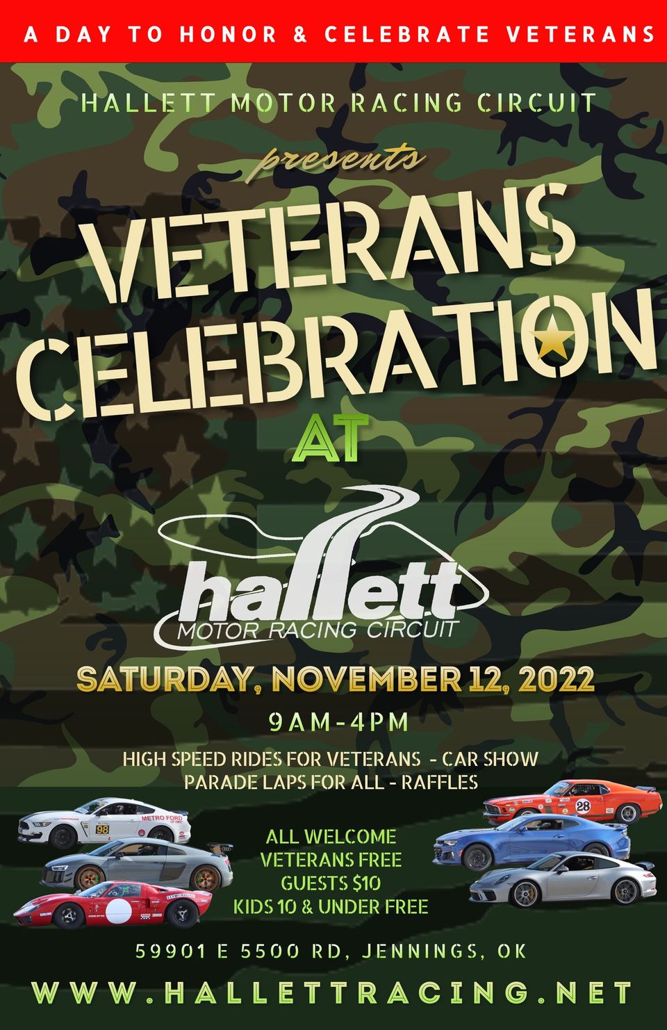 How about a BIG thank you to our veterans, active and retired. The Oklahoma Mustang Club will be participating in this years HALLETT MOTOR RACING CIRCUIT’s Veterans Day Celebration. Here’s some of the information about the event: